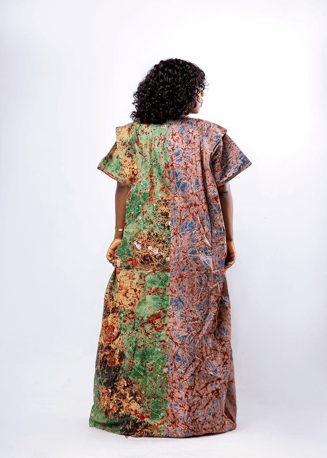 “Aweleewa,” meaning “Delicate beauty,” captures the essence of this dress. Each intricate pattern, hand-dyed with time-honored techniques, tells a story to enhance and celebrate your rich African roots. Available in Purple and green, Orange and blue, and Green mix